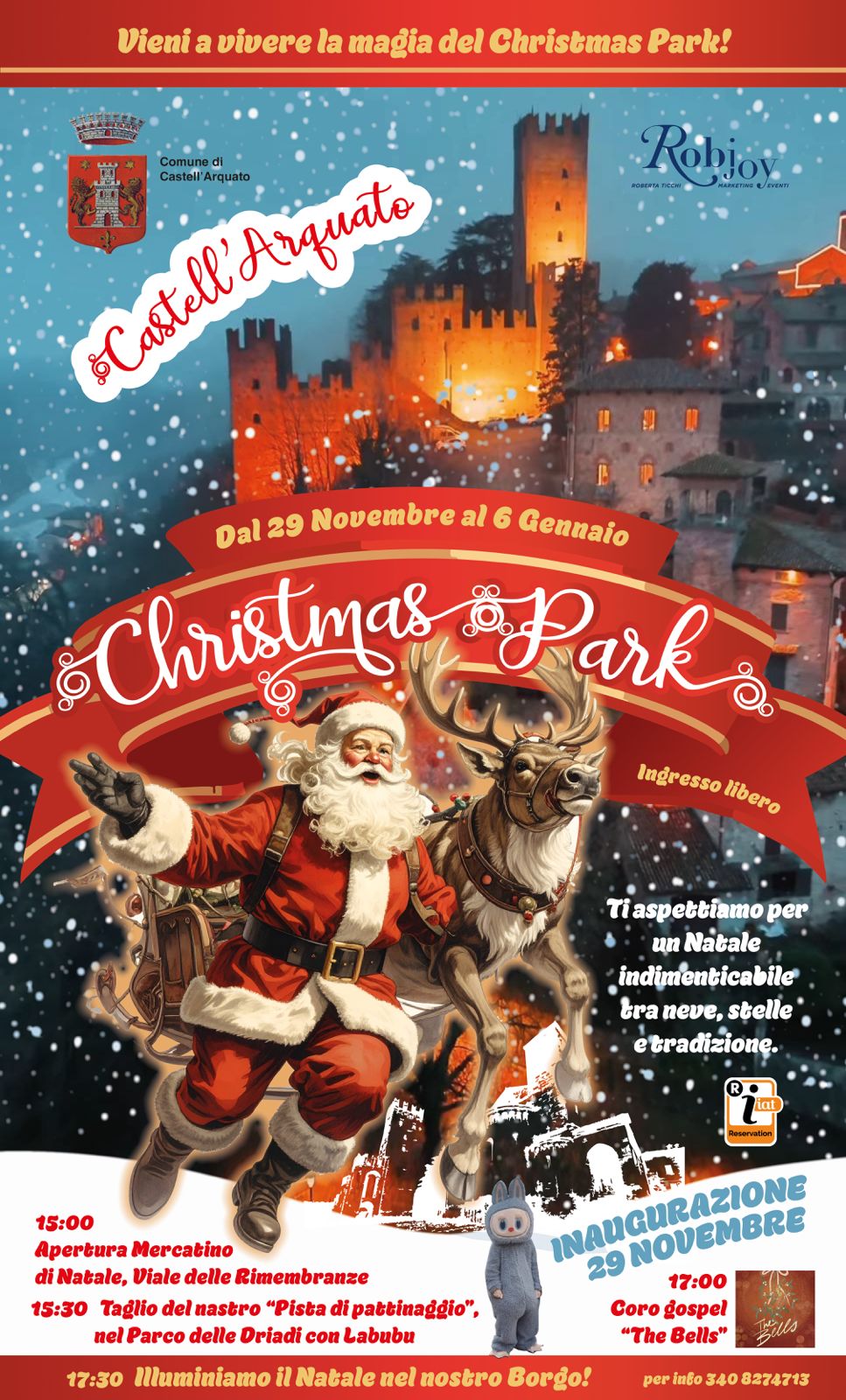 Quest’anno il periodo di fine anno a Castell’Arquato sarà allietato da una novità: arriva il Castell’Arquato Christmas Park! Presso lo storico Parco delle Driadi, che si trova proprio alle porte del centro storico medievale, all’ombra della Rocca Viscontea e del Torrione Farnese, arriva una scintillante pista da pattinaggio con divertimento assicurato per grandi e piccini! Nell’adiacente viale delle Rimembranze vi attendono invece le casette con i mercatini di Natale.