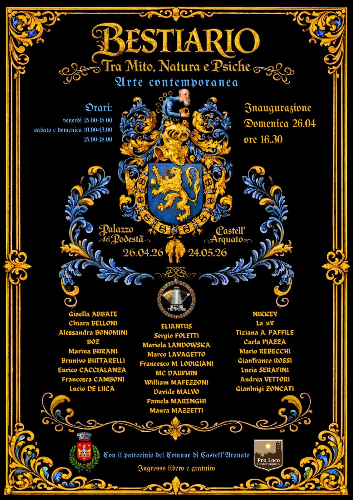 Il Palazzo del Podestà di Castell’Arquato riapre le sue porte al pubblico per ospitare Bestiario: una particolare e originale mostra collettiva a cura dell’Associazione Sine Tempore. Un viaggio fra mito, natura e psiche , a cavallo fra passato e presente, in cui l’arte contemporanea esplora l’iconografia del bestiario medievale attraverso le moderne interpretazioni di ben 28 artisti, pronti a sfidare l’immaginazione del visitatore.