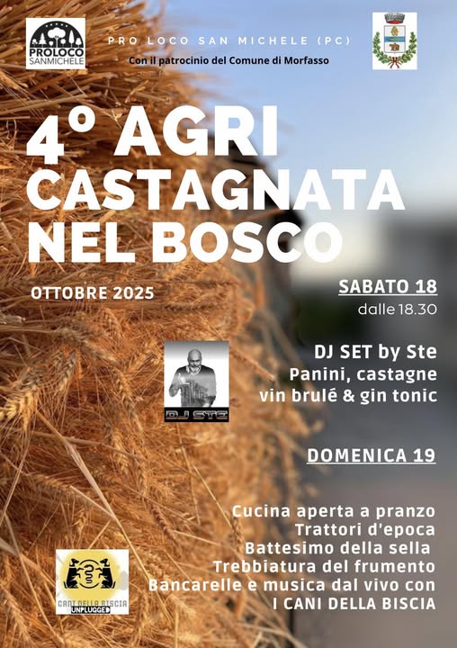 Torna anche per il 2025 l’appuntamento autunnale con l’Agricastagnata nel Bosco a San Michele di Morfasso! Questa festa, organizzata dalla locale Pro Loco, ha una particolarità unica, visto che riporta le castagne direttamente nel loro ambiente naturale, all’interno dei boschi del Parco Provinciale del Monte Moria, in una zona ricca di castagneti secolari.