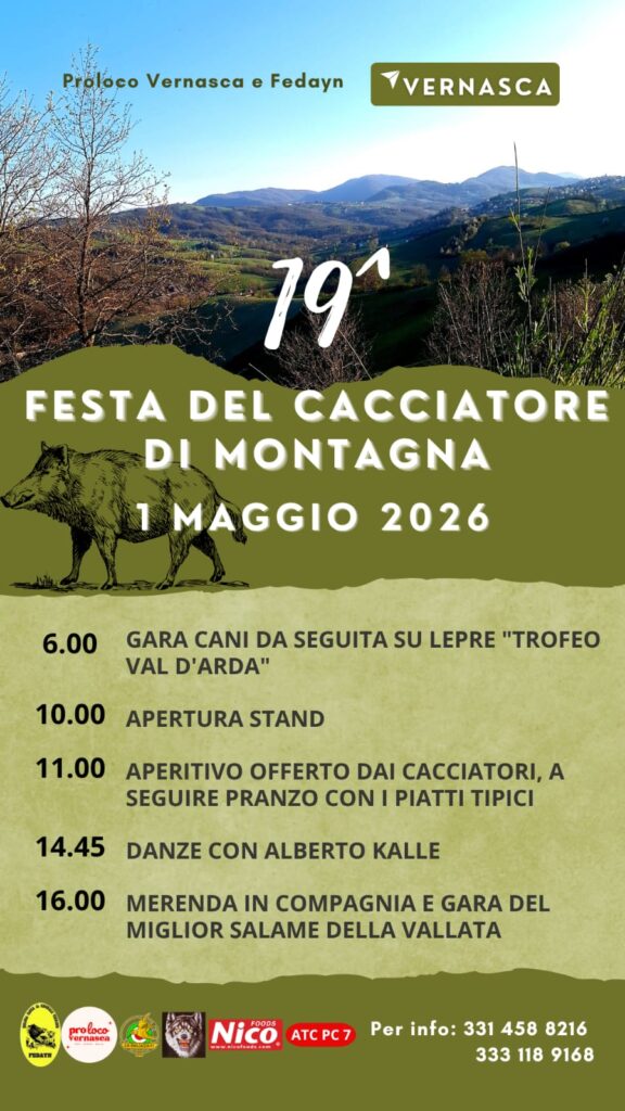 Diciannovesima edizione per la Festa del Cacciatore di Montagna di Vernasca, nella tradizionale data festiva del Primo maggio. Una intera giornata dedicata a competizioni, accompagnata da musica e gastronomia.